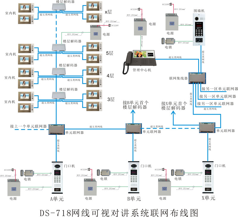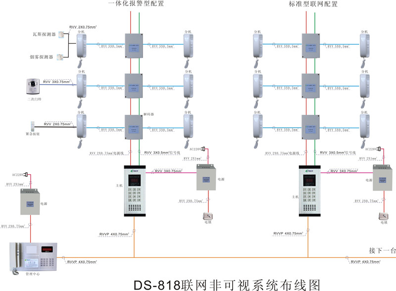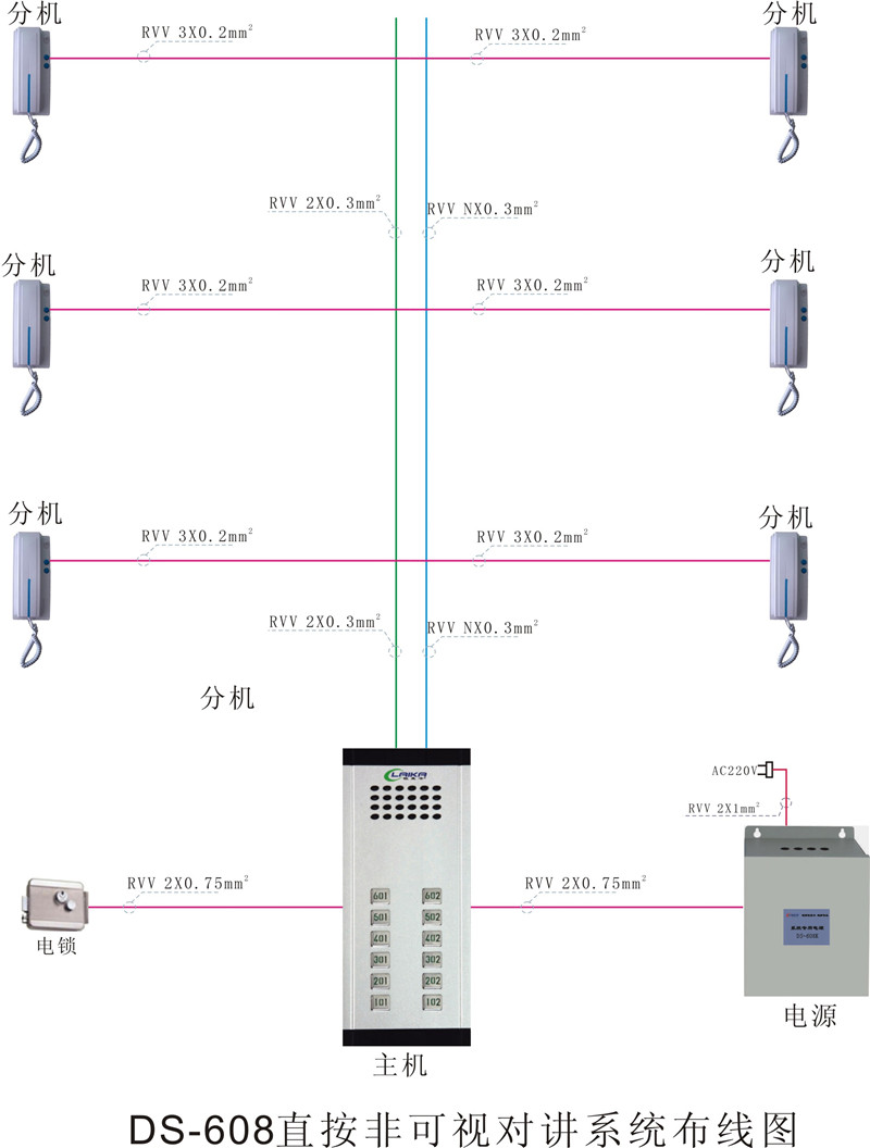 • DS-808二線制數碼非可視對講系統布線圖(樓層解碼)